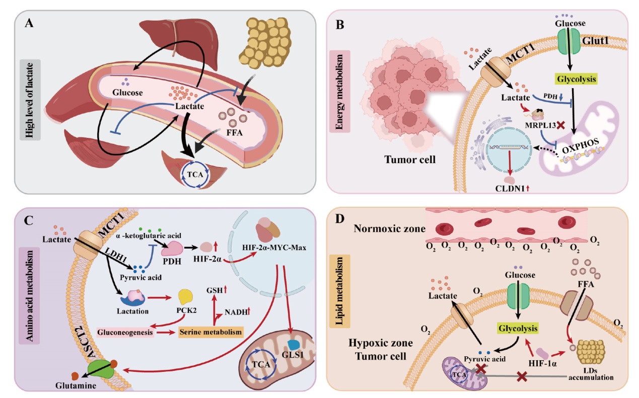 | 图1 乳酸重塑肿瘤细胞代谢过程的示意图 |
